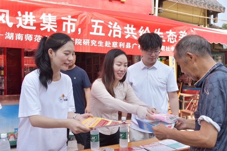 法治春風進集市,五治共繪生態美:湖南師范大學法學院研究生實踐團在廣福橋鎮開展特色普法宣傳活動