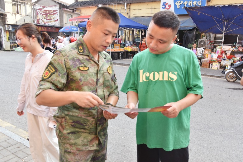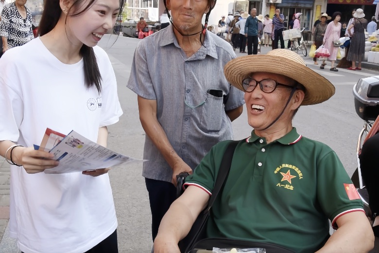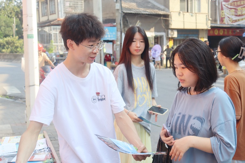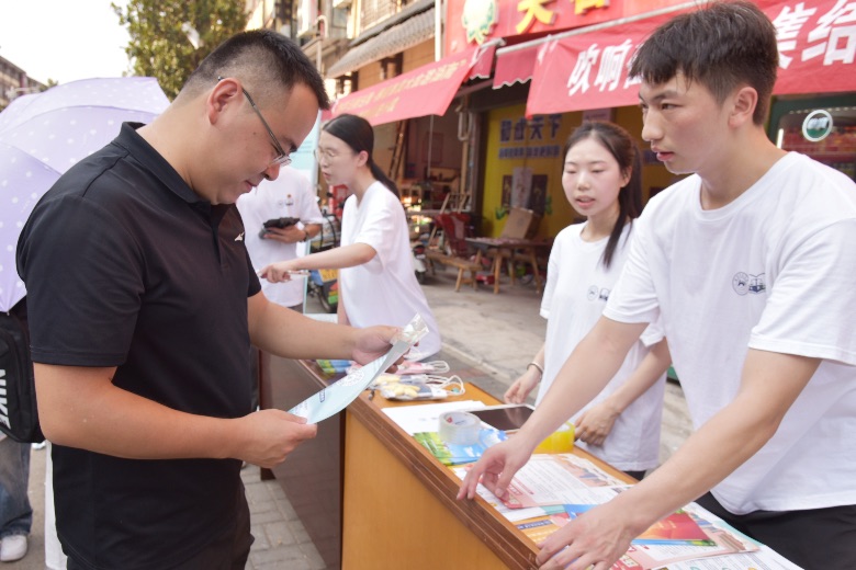 集市普法現場,一位80歲高齡的退伍老兵頂著烈日,仔細翻閱實踐團準備的十余份普法宣傳單頁后稱贊:“這些法律知識通俗易懂,村干部還經常廣播防詐騙提醒,很實用!”
