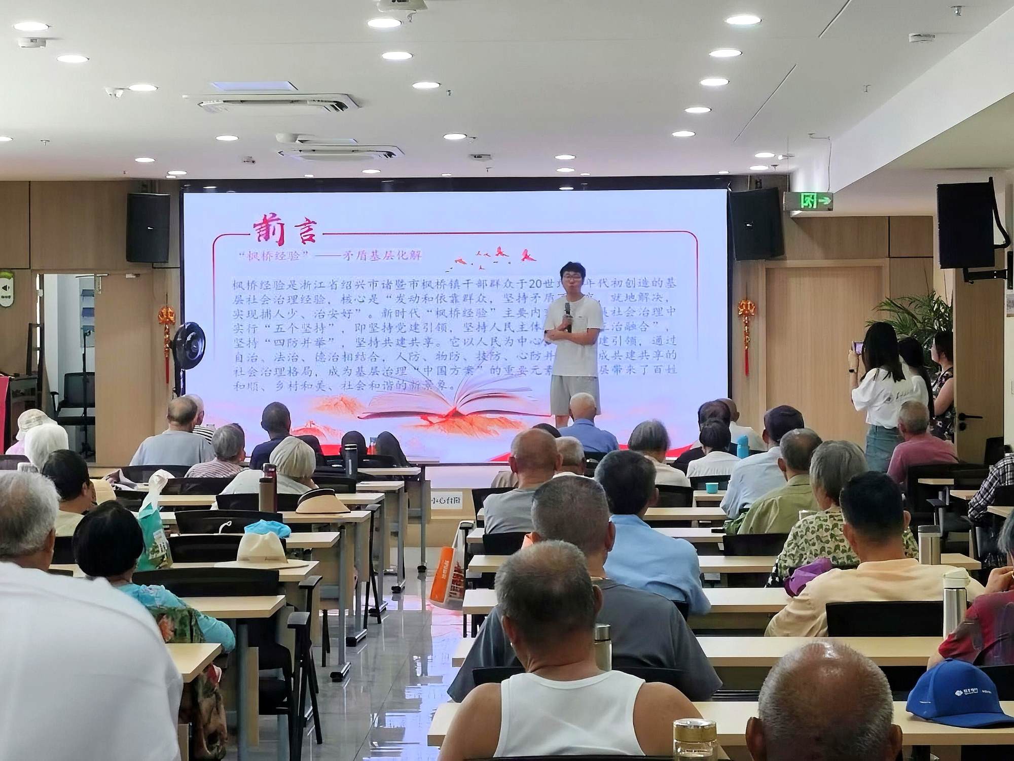青年行動:傳播“楓橋經(jīng)驗”新聲 活動伊始,實踐團(tuán)成員化身“楓橋經(jīng)驗”傳播者。在社區(qū)活動中心,他們通過展板和宣講,向居民清晰闡釋了“依靠群眾、預(yù)防化解矛盾”的核心內(nèi)涵,著重強(qiáng)調(diào)黨建引領(lǐng)的關(guān)鍵作用和群眾路線的實踐價值,獲得社區(qū)居民積極反響。宣講結(jié)束后,成員們隨即分組深入社區(qū),開展聚焦社區(qū)治理現(xiàn)狀、矛盾調(diào)解效能及居民滿意度的主題問卷調(diào)查。這一過程不僅有效收集了一手資料,更讓成員們切身感受到“小事不出樓棟”的基層實踐智慧。“只有真正走進(jìn)社區(qū),才能觸摸到‘楓橋經(jīng)驗’跳動的脈搏,”一位成員在調(diào)研后感慨道。