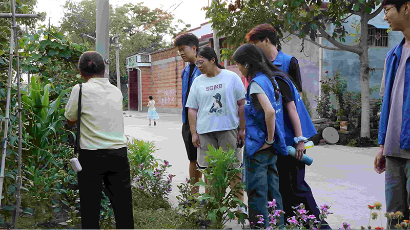 日落西斜、傍晚時分,團隊成員在冠軍村信息員海蕊的帶領下,對村落進行實地走訪。成員深入田間地頭,在海蕊的講解中感受冠軍村的風土人情。一路上,有記錄李氏祠堂百年歷史的石碑、香火繚繞的關公廟,有住在自建房中的老人、購置了小樓的青年。正是這點點滴滴的風土人情,造就了冠軍村獨一無二的人文風貌。