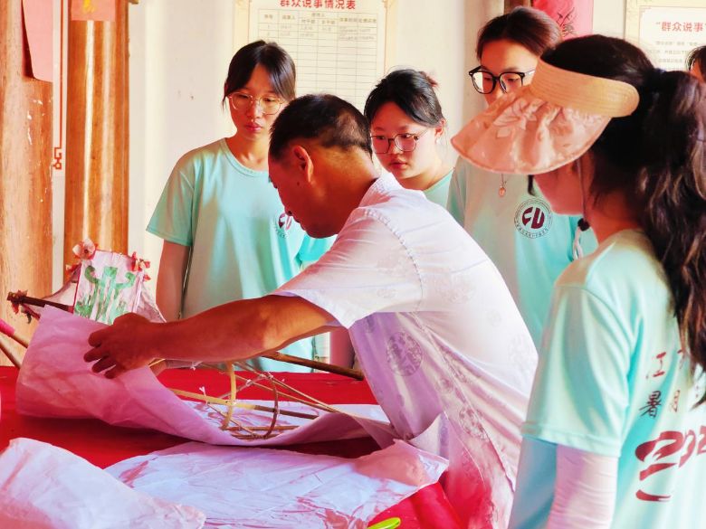 在動手實踐之余,隊員們也圍繞“珍珠燈”的現狀與傳承,與汪師傅進行了深入交流。作為傳承千年的活化石,“珍珠燈”有著極其嚴格的儀式規程,包括起燈、祭祀、游燈表演和收燈四個步驟。他坦言,完整儀式的傳承面臨挑戰,尤其是年輕一代大多外出務工,缺乏學習實操的時間和精力。然而,潭口村人守護祖業的決心歷經千年從未動搖,他們將傳承初心與匠心堅守相結合,立足燈彩傳統,面向熠熠未來,歡迎更多年輕一代的大學生深入鄉村,動手制作,讓“珍珠燈”的流光彩韻映在更多人的眼中。走過這段實踐歷程,隊員們深刻認識到,這份傳承不僅是對傳統技藝的保護,更是對浮梁獨特歷史記憶和文化自信的堅守。如何在恪守傳統本真與探索長遠發展之間找到平衡,是“珍珠燈”乃至眾多非遺項目延續生機的關鍵。