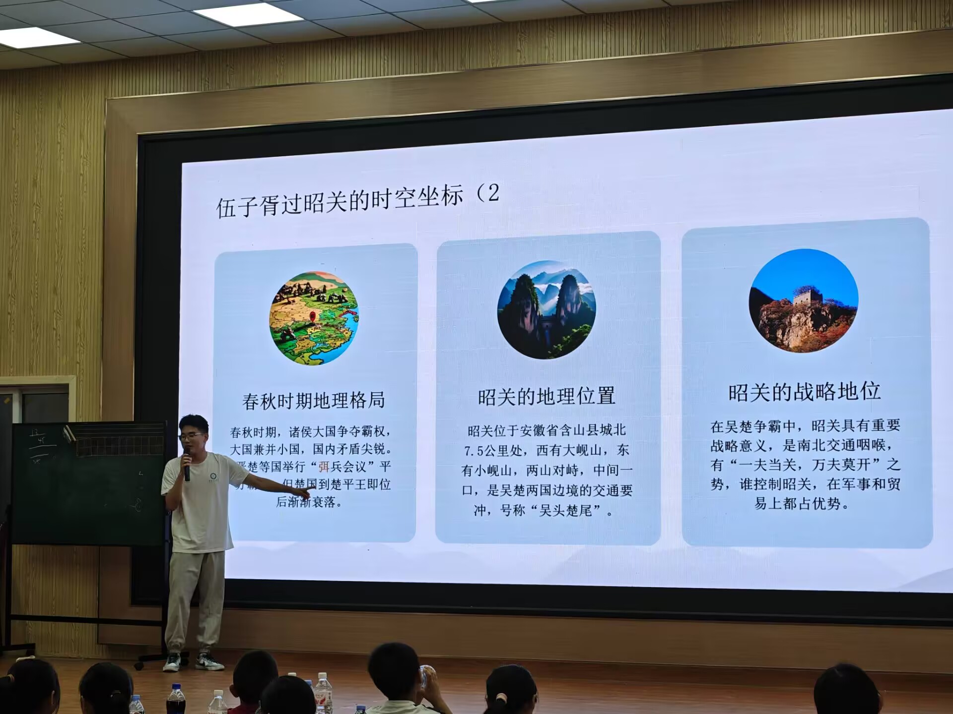 給同學(xué)們講解伍子胥過(guò)韶關(guān)的文化歷史(攝影:周建宇)