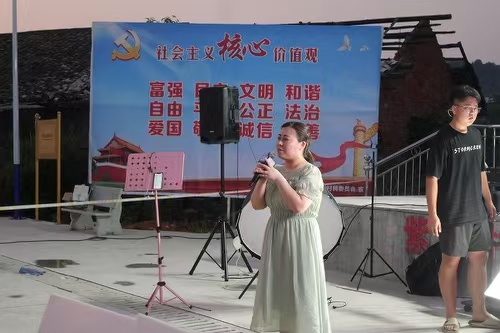 “紫竹大舞臺,有夢你就來!”伴隨著熟悉的開場語,一場充滿鄉土氣息與激情的歌唱比賽在譚家山鎮紫竹村“悅歌大舞臺”火熱上演。7月4日,湘潭大學金翼5·1·8愛心團隊赴湘潭市湘潭縣紫竹村暑期社會實踐團(以下簡稱“實踐團”)深入紫竹村,全程參與并支持了這場備受矚目的群眾文化活動,與村巾幗志愿隊攜手,為村民搭建起展示風采、唱響幸福的舞臺。