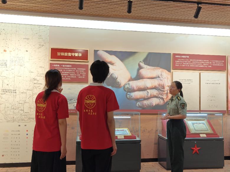 活動期間,實踐團成員們首先參觀了魏德友戍邊事跡展覽館。館內陳列的望遠鏡、軍用水壺、戍邊日記等實物,守著孤寂蒼茫戈壁,魏德友走過了整整一個甲子。據講解員介紹,自1964年轉業以來,魏德友累計巡邊里程達20萬公里,這些展品成為其“用腳步丈量國土”的見證。塔里木大學方馨在參觀后表示,這些展品讓她深刻感受到這是一位心中有信仰,肩上有使命,眼里有光芒,腳下有力量的時代英雄。