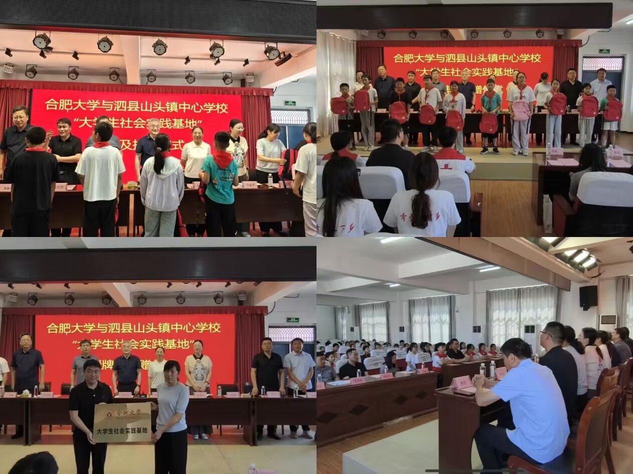 7月3日上午,合肥大學(xué)黨委書記鄔平川一行來到泗縣山頭鎮(zhèn)中心學(xué)校,親切看望慰問“共鐫曙光隊(duì)”師生,并出席校團(tuán)委捐贈(zèng)儀式暨“合肥大學(xué)生社會(huì)實(shí)踐基地”授牌活動(dòng)。 捐贈(zèng)儀式上,合肥大學(xué)向當(dāng)?shù)鼐栀?zèng)了書包、籃球等物資,為孩子們送去了實(shí)實(shí)在在的關(guān)懷。隨后,“合肥大學(xué)生社會(huì)實(shí)踐基地”正式授牌,這一舉措標(biāo)志著合肥大學(xué)與泗縣在實(shí)踐育人、校地合作方面邁出了新的步伐,將為后續(xù)長(zhǎng)期開展社會(huì)實(shí)踐活動(dòng)奠定堅(jiān)實(shí)基礎(chǔ)。 鄔平川在活動(dòng)中對(duì)實(shí)踐團(tuán)隊(duì)提出殷切期望,他勉勵(lì)同學(xué)們要珍惜深入基層的機(jī)會(huì),在服務(wù)中了解國情民情,錘煉過硬本領(lǐng);同時(shí)鼓勵(lì)當(dāng)?shù)貙W(xué)生勤奮學(xué)習(xí)、成長(zhǎng)成才,未來用知識(shí)回報(bào)社會(huì)、報(bào)效祖國。他表示,合肥大學(xué)將充分發(fā)揮高校智力資源優(yōu)勢(shì),持續(xù)支持泗縣在社會(huì)、經(jīng)濟(jì)、教育等領(lǐng)域的發(fā)展。實(shí)踐團(tuán)隊(duì)隊(duì)長(zhǎng)劉珊靈深受鼓舞,她表示團(tuán)隊(duì)將以更高的責(zé)任感投入后續(xù)工作,精心組織活動(dòng),加強(qiáng)與當(dāng)?shù)貛熒罕姷臏贤ǎ袑?shí)為基層辦實(shí)事、解難題,不辜負(fù)領(lǐng)導(dǎo)的囑托與信任。