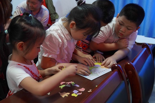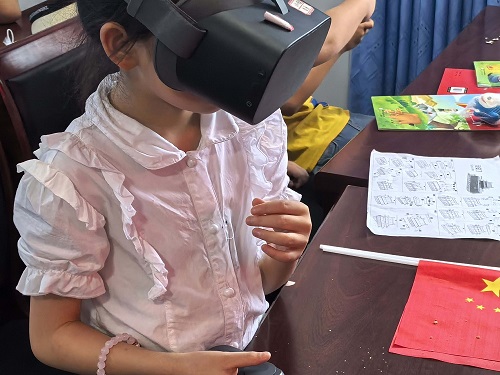 童心向黨繪藍圖,數智薪火照紅心。團隊以思想引領為核心,打造紅色教育課堂,借助VR技術賦能紅色(黨史)教育,讓歷史“活”起來。孩子們佩戴VR設備,沉浸式體驗紅軍長征的艱苦歷程,親身“參與”飛奪瀘定橋、翻越雪山等歷史場景,感受革命先輩的英勇精神。“原來長征這么難,紅軍叔叔太勇敢了!”摘下眼鏡的孩子感慨道。隨后,“技能+N數智小學堂”通過“紅色知識接力賽”,將VR體驗中的關鍵知識點轉化為趣味問答,在寓教于樂中深化學習效果;“巧手拼中國”地圖拼圖與“匠心筑天安門”積木搭建活動,則讓愛國情懷在動手實踐中具象化。活動尾聲,全體師生齊唱《我和我的祖國》,在歌聲中升華情感,完成從科技體驗到信仰培育的閉環,讓紅色教育從“感知”走向“內化”,從“體驗”走向“行動”。