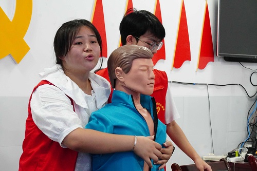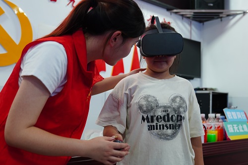 童心筑牢安全盾,數智點亮平安燈。團隊聚焦青少年安全素養提升,以VR技術賦能安全(生命)教育,讓場景“真”起來。孩子們通過沉浸式體驗地震逃生、消防隱患排查等真實場景,掌握應急避險技能。“伏地、遮擋、手抓牢”的口訣在耳邊回響,孩子們迅速找到三角區避險,親歷地震帶來的緊張氛圍。“這種學習方式像闖關游戲,我找到了所有隱患!”一名孩子興奮地展示自己的“電子勛章”。隨后,“技能+N數智小學堂”,通過心肺復蘇實訓、防溺水游戲、急救知識問答等形式,引導孩子們動手實踐,在人體模型上練習標準按壓動作;“沖脫泡蓋送”燙傷處理口訣融入“吹球過河”游戲中,使安全知識從理論認知轉化為行為本能。讓本領“強”起來,讓守護“實”起來,真正實現從“紙上談兵”到“實戰演練”的跨越。