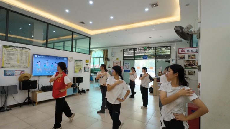 為了即將到來的游園會,舞蹈排練成了我們每天下午的“固定節目”。隊員們聚集在服務站的電視機前,對著屏幕一遍遍回放教學視頻。有人記不住動作,就盯著屏幕反復慢放;有人踩不準節拍,就讓隊友打著拍子喊口號;偶爾有人順拐出糗,全屋立馬笑成一團,卻沒人停下腳步,大家擦把汗,又跟著音樂重新起舞。