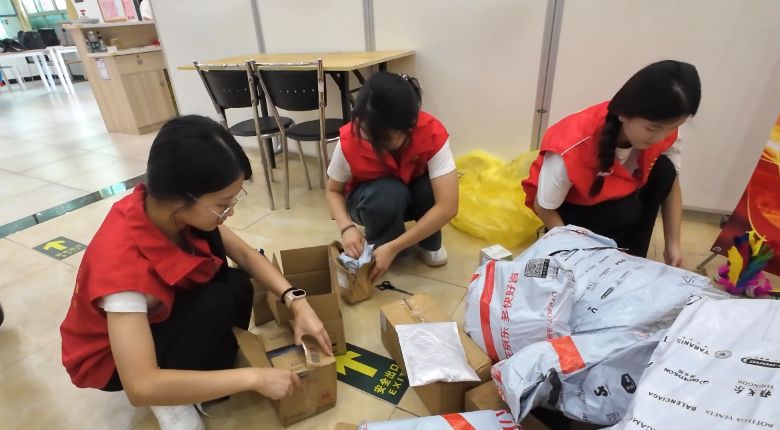 我們的日常:在協作里升溫,把熱愛藏進每分每秒 團隊的日常里,藏著太多細碎的快樂。拆快遞是每天的“小期待”——從學校寄來的活動物資,大家圍蹲在地上拆包裝,你遞剪刀我理繩子,誰拆到新奇的小物件,總會引來一陣起哄笑鬧。