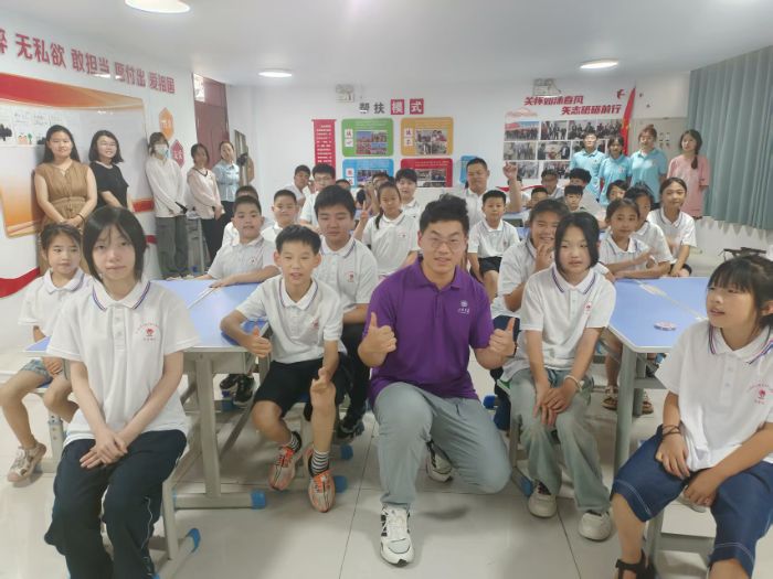 在進行系列參觀、調研活動之后,“沭火新光”宣講團成員帶著實踐收獲與理論思考,將實踐成果轉化為面向不同群體的宣講實踐。7月8日上午,團隊成員與小樹林支教團攜手聯動,走進臨沂蘭山區向支教團的少年們宣講和分享團隊在此次實踐活動中的感受與成果。