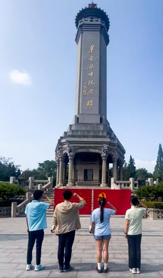 在華東革命烈士陵園,蒼松翠柏環(huán)繞,烈士紀(jì)念碑高聳入云。隊員們向革命先烈敬獻(xiàn)花籃,重溫入黨誓詞,錚錚誓言回蕩在陵園上空。“每一座墓碑都是一座精神燈塔,他們用生命換來了今天的和平,我們必須接過接力棒,為國家富強(qiáng)而奮斗。”隊員隋雨航深有感觸。
