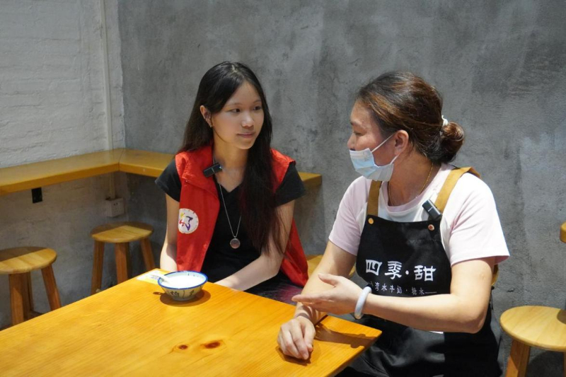 圖為實踐團成員采訪水牛奶店主。 灣風新語實踐團 攝