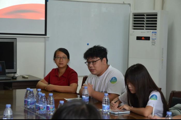 ▲圖為隊長霍泓杰同學代表團隊匯報本次“三下鄉”項目計劃 林敏樺供圖