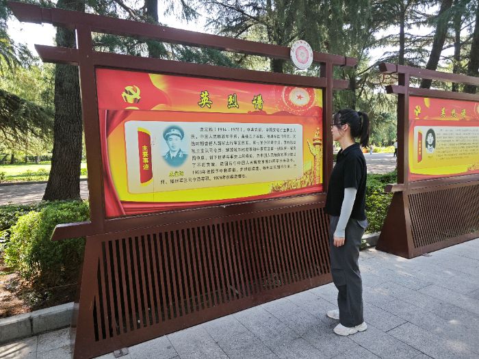 2025年7月6日,實踐團隊通過一系列討論,確定了中原英烈紀念館、碧沙崗公園和二七紀念堂的參觀路線,并通過實地參觀學習與相互交流,直觀地了解了中原英烈的事跡,豐富了隊員對于中原英烈精神的理解,為接下來的宣講做好了理論準備。隊員們首先來到了莊嚴肅穆的鄭州烈士陵園,向烈士紀念碑深深鞠躬并獻上花朵,表達了他們對烈士們的崇敬與哀思。
