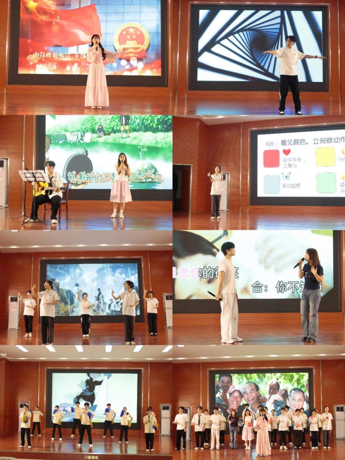 演出在激昂的歌曲《不忘初心》中拉開帷幕,表演者用動人的歌聲,唱出了對夢想的堅守和對初心的銘記,迅速點燃了現場氣氛。對口相聲《八大吉祥》幽默詼諧,表演者妙語連珠,引得村民們笑聲不斷,掌聲此起彼伏。歌曲《小手拉大手》《小酒窩》等,或溫婉動人,或歡快活潑,展現出實踐團志愿者們出色的唱功。中國舞《鴛鴦戲》優美輕快,如靈動的鳥兒嬉戲,在舞臺上勾勒出一幅美妙畫卷。機械舞《light it up》活力四射,舞者靈動的身姿彰顯著青春的朝氣。來自緬甸、泰國的國際留學生們帶來的古典舞《遠近如一》優雅曼妙,在文化交融中將中國古典韻味完美呈現,為村民們帶來新奇體驗。手語操《請篤信一個夢》,表演者們用無聲卻有力的手勢,傳遞著堅定的信念和美好的期許,令人動容。《青蘋果樂園》的舞者們洋溢著青春的熱情,動感的舞步點燃全場。演出最后,實踐團全體成員一同登臺,深情合唱《我和我的祖國》,激昂的旋律、真摯的歌聲,唱出了對祖國深深的熱愛與祝福,為這場精彩的演出畫上圓滿句號。