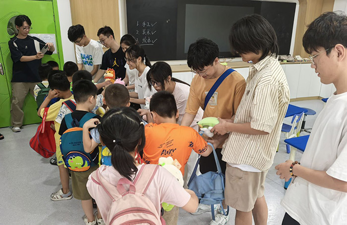 每一堂課,都是志愿者與孤獨癥兒童們心與心之間的交流。在輕松有趣的課堂氛圍中,孩子們漸漸地不再拘謹,變得勇于表達,積極與志愿者們互動。課程結束后,實踐團向幼教中心捐贈了玩偶等愛心物資,希望這些承載著關懷的小物件能夠給孩子們帶來溫暖。“看到孩子們臉上洋溢著純真的笑容,我更加堅信我們的藝術療愈課程是有意義的。他們在藝術創作里釋放天性,我也學會更加耐心地去傾聽,愿以微光,照亮他們的小小世界。”志愿者高國秦感慨道。