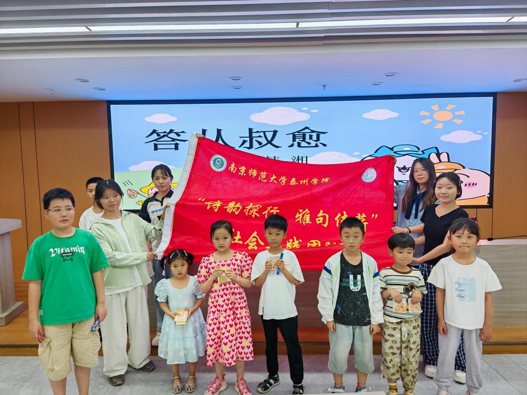 2025年7月7日下午3時,南京師范大學泰州學院人文傳媒學院“詩韻探行,雅句傳薪”暑期社會實踐團隊積極響應“三下鄉”號召,走進泰州市斜橋社區,開展“詩歌文化潤童心”主題活動,致力于推動詩歌文化在小學生群體中的傳播與傳承,以多元形式為兒童送上文化盛宴。