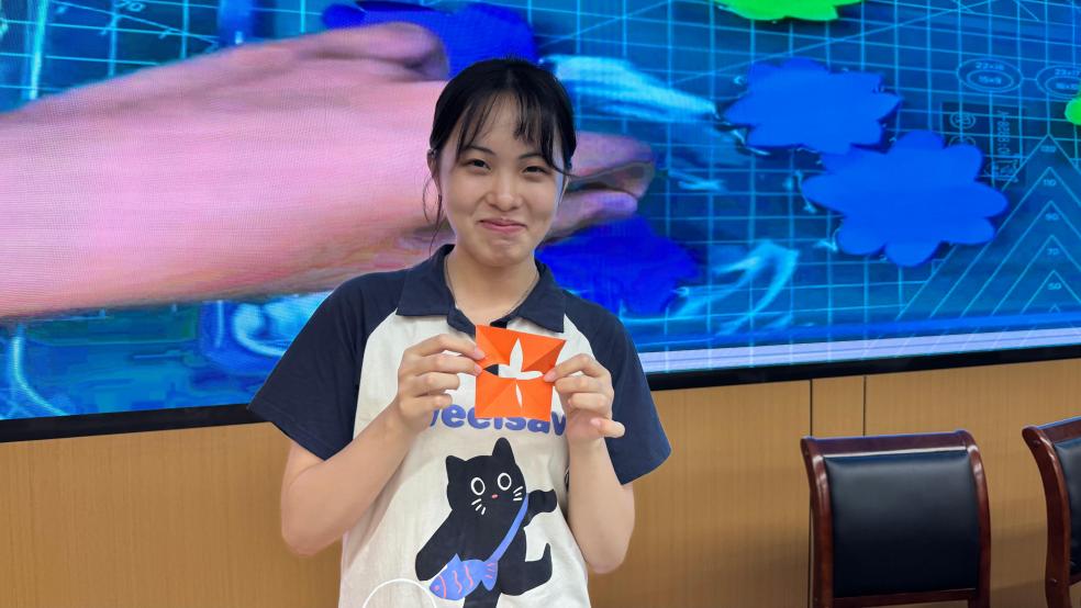 活動下半場的手工創作環節將現場氛圍推向高潮。主講人李婉婷通過投影儀分步驟演示傳統折紙窗花制作流程,孩子們在團隊成員指導下使用安全剪刀、彩色卡紙等材料進行操作。志愿者們采取分組指導模式,既協助低齡兒童完成折痕對齊、花紋描繪等精細動作,也引導老年參與者與兒童結對合作,現場"先這樣對折""這里要畫圓一點"的指導聲不斷。約二十五分鐘后,首批作品陸續完成,孩子們高舉著各色窗花爭相展示:"我的窗花有六片花瓣,像真的花一樣!""我剪的是五角星,準備送給老師!"活動室內此起彼伏的歡笑聲與投影屏上的制作教程形成溫馨圖景。