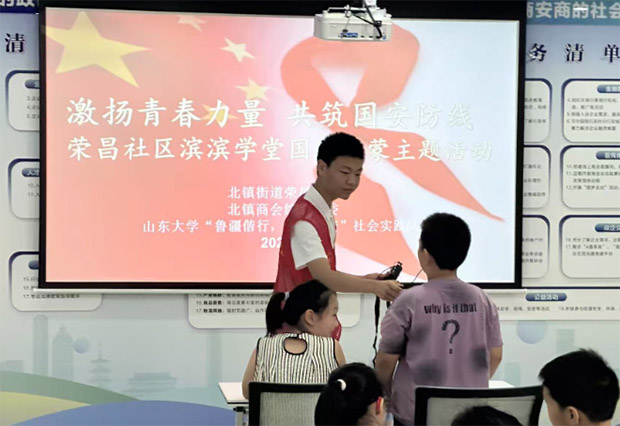 為增強(qiáng)青少年國(guó)家安全意識(shí),近日,山東大學(xué)“魯疆偕行,青穗護(hù)安”社會(huì)實(shí)踐隊(duì)走進(jìn)山東省濱州市北鎮(zhèn)街道榮昌社區(qū),聯(lián)合榮昌社區(qū)暖鄰匯網(wǎng)格黨群服務(wù)站、北鎮(zhèn)商會(huì)綜合黨委,開(kāi)展了一場(chǎng)別開(kāi)生面的“榮昌社區(qū)濱濱學(xué)堂國(guó)安啟蒙主題活動(dòng)”。