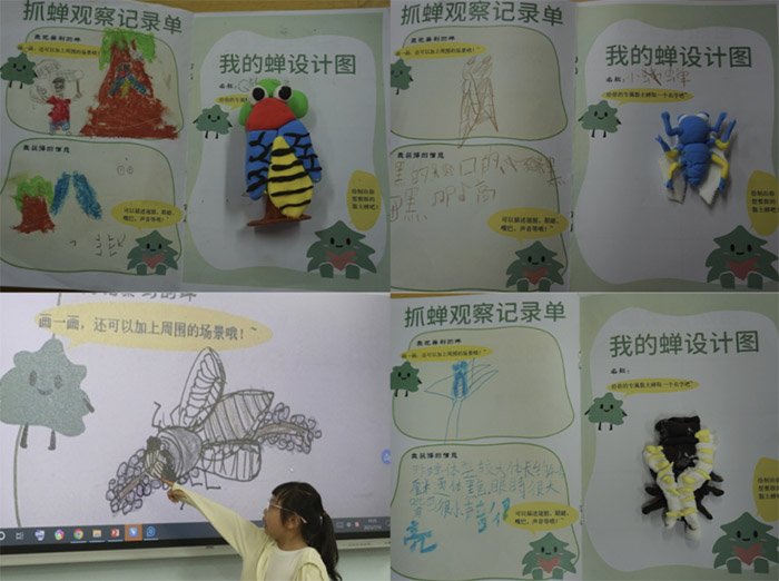 下午的實(shí)踐課程孩子們圍坐觀察活體蟬,指尖輕觸翅膀感受紋路。在粘土制作環(huán)節(jié),各色粘土在小手中變成形態(tài)各異的蟬,從超長(zhǎng)觸角到漸變蟬翼,孩子們的想象力與動(dòng)手能力在創(chuàng)作中同步生長(zhǎng)。觀察完后小燁老師便帶領(lǐng)著孩子們放飛了蟬,讓珍愛生命的理念深入他們的心間。
