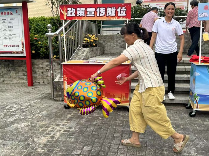 孩童們鼓起腮幫,專注地將乒乓球吹過盛滿清水的碗;年輕人手持竹圈,目光如炬地瞄準心儀獎品;白發(fā)阿婆小心翼翼抱著氣球,笑盈盈地參與趣味游戲……“潮聲漁影“突擊隊穿梭在人群中引導、協(xié)助,每當看到村民們集齊通關印章,捧著滿載心意的禮包開懷大笑,院中此起彼伏的歡聲笑語,都讓這次實踐之旅充滿意義。