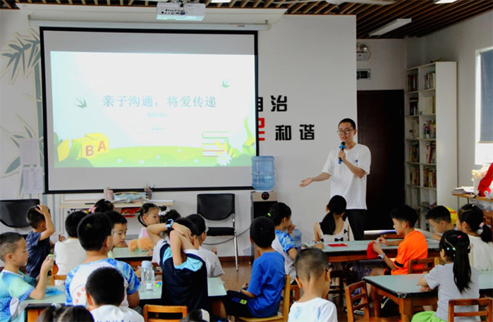 家是情感的歸宿,而親子間的良好溝通是維系家庭溫暖的重要紐帶。為助力親子間搭建更有效的溝通橋梁,讓每一份愛都能被清晰感知。社會實踐團隊宣講員胡壹鳴為社區(qū)的小朋友們帶來了一節(jié)生動的課堂,通過聚焦親子間“情感語言不通”的難題,通過游戲互動、傳授技巧、分享交流等形式,幫助小朋們有效掌握親子溝通的核心密碼,引導小朋友們體悟溝通的真諦,從而增進家庭情感聯(lián)結,營造互理解、共包容的家庭氛圍。