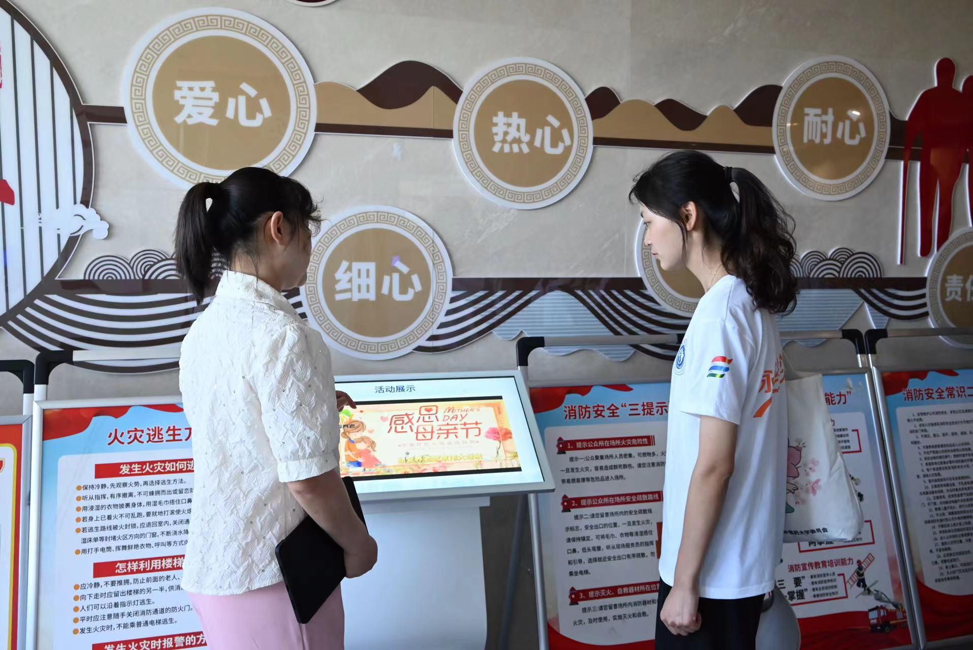 圖為養(yǎng)老院工作人員向團隊成員介紹老人與養(yǎng)老院情況。趙俊 供圖