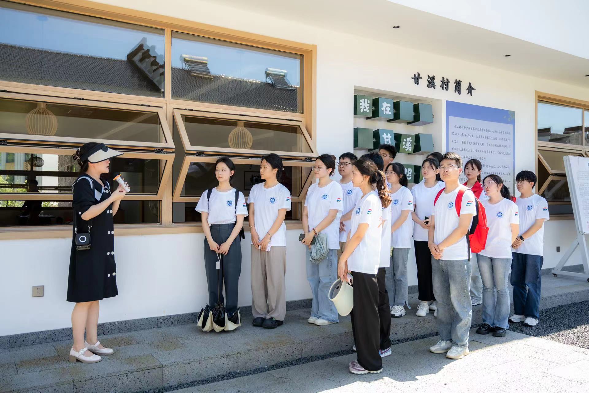 圖為實踐團隊在甘溪村會客廳門口聆聽介紹。趙俊 供圖
