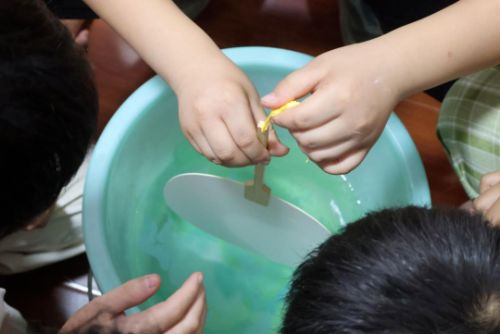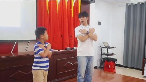 貪玩調(diào)皮的樂樂打鬧時不慎跌落池塘,“救救我,快救救我!”恰好被岸邊路過的朵朵看到,“救命,有人掉水里了,快來人呀!”“你別慌,我這就把救生衣給你!”,最終樂樂成功獲救。這場由支教隊員和孩子們共同演繹的情景劇,以“小河邊的安全小課堂”為主題,將溺水險情搬進課堂,展示了落水后的自救要點與科學施救方法,一開場就抓住所有孩子的目光。