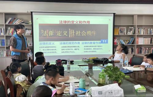 當日下午的普法宣傳課堂則聚焦鄉(xiāng)村法律宣傳不足、兒童法律認知薄弱的情況,創(chuàng)新采用“案例解讀+情景模擬”的方式。支教隊員選取與未成年人密切相關的例子,用通俗易懂的語言解讀法律法規(guī)中的核心內(nèi)容。為讓抽象的法律條文變得可知可感,隊員們特別設計了“我是小法官”情景劇,在角色代入中,孩子們逐漸理解了“法律是保護自己的鎧甲,也是行為處事的邊界”。支教隊員著重強調(diào),未成年人既要懂得用法律保護自己,也要養(yǎng)成遵法守法的習慣,不做危害社會和他人的事情,讓成長之路始終有法治護航。