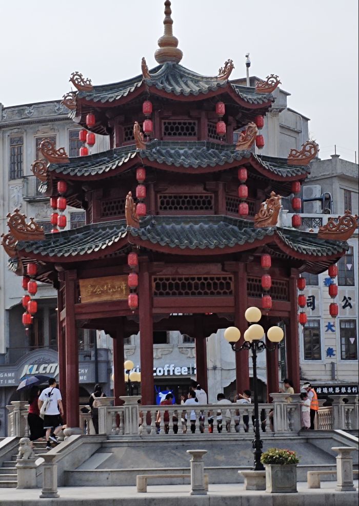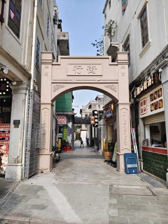 汕頭開埠區(qū):騎樓廊柱銘商埠,尺素千帆載僑情 踏入小公園開埠區(qū)環(huán)形放射狀街區(qū),中山紀(jì)念亭如時空樞紐矗立中央。巴洛克山花與潮州金漆木雕在騎樓立面上碰撞出“中西合璧”的建筑史詩,實踐團穿行于“下店上宅、前廊后市”的廊柱間,解碼其兼防臺風(fēng)與促商貿(mào)的雙重智慧:“這些拱券連廊既是風(fēng)雨屏障,更是百年前‘樓宇即貨架’的商業(yè)創(chuàng)新。”