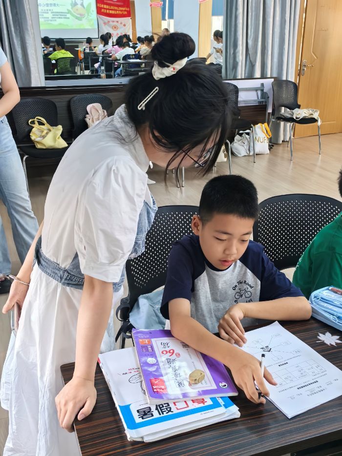 (圖為實(shí)踐成員輔導(dǎo)學(xué)生古詩詞。周紫玉供圖)