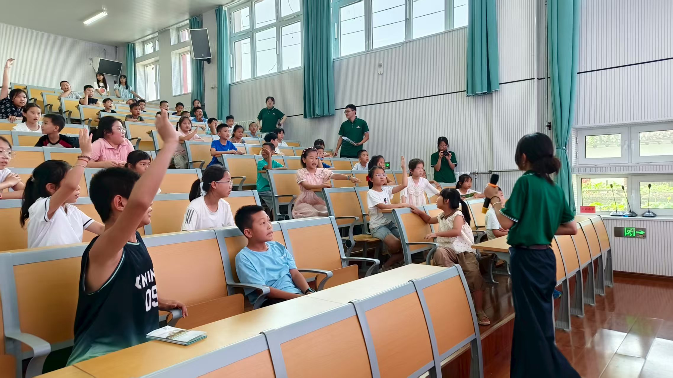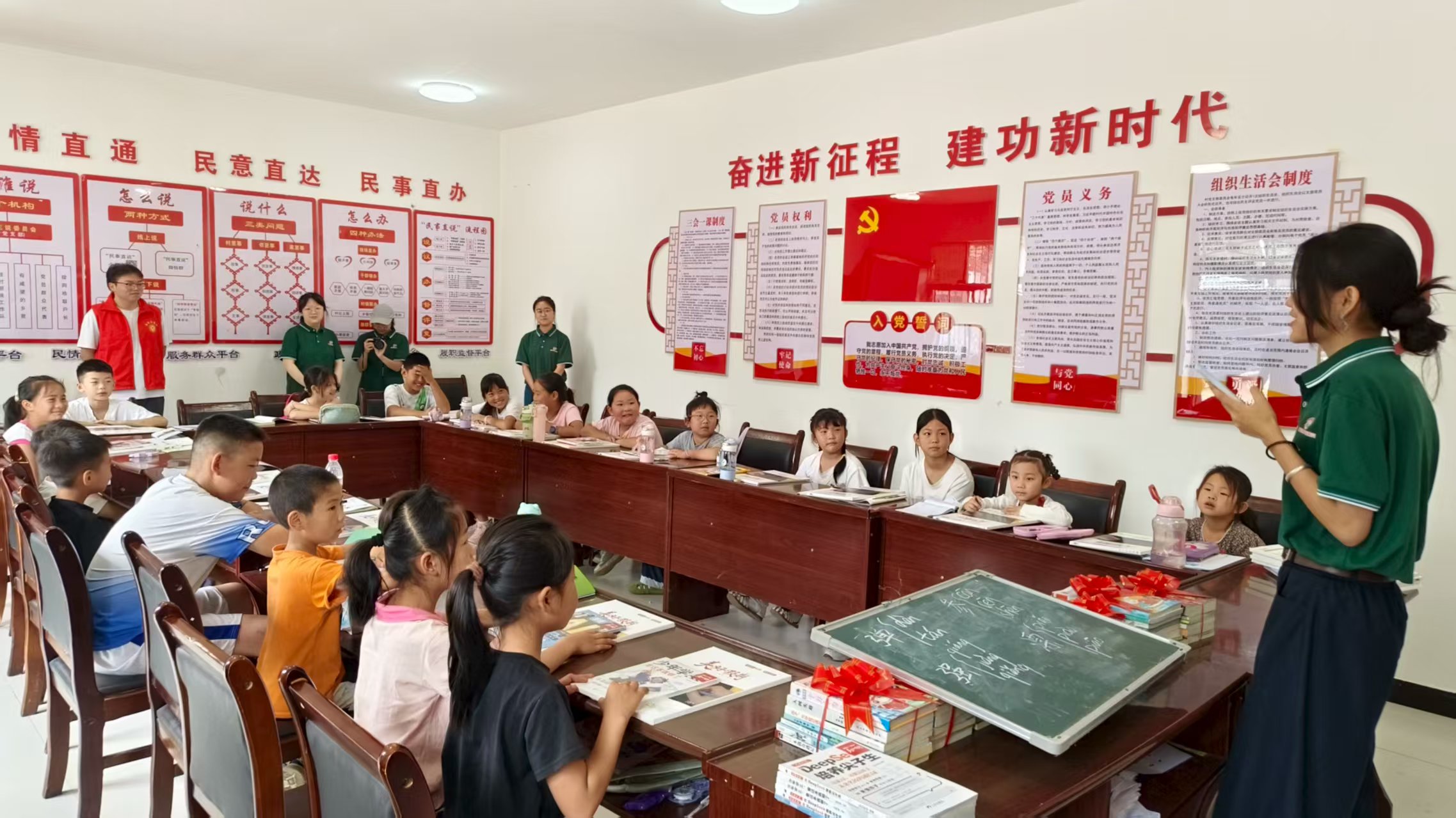7月24日上午,實踐隊轉戰興化鄉黨群服務中心,為30余名鄉鎮托管班學生開設“普通話魔法課堂”。課程以“鄉村生活情景劇”貫穿,孩子們通過角色扮演學習“種地”“播種”等多音字詞的實際應用;“童聲誦家鄉”環節中,隊員帶領學生用普通話朗讀描寫隴南風土的詩歌,激發對母語與鄉土的熱愛。