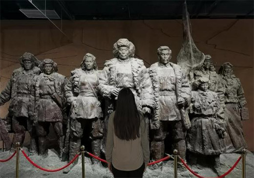 一旁的展柜中,陳列著一件打滿補丁的衣物,布料早已褪色,邊角處磨損嚴重。團隊成員陳穎等了解到在東北冰天雪地且條件惡劣的情況下,楊靖宇將軍和戰士們常常食不果腹,但他們卻以鋼鐵般的意志,在白山黑水間筑起了一道堅不可摧的血肉長城。