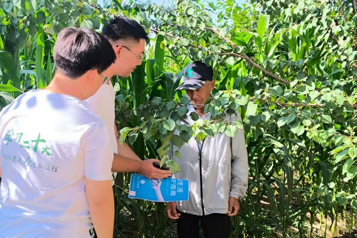 團(tuán)隊(duì)成員向農(nóng)戶普及AI。趙雅琪 供圖