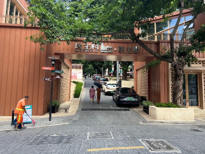 其中特別在九龍坡區(qū)謝家灣街道民主村,昔日“老破小”已成“網(wǎng)紅打卡地”。民主村在有著改造社區(qū)都具備的優(yōu)點(diǎn)下,更注重于商業(yè)與居住的結(jié)合,打造出了一個(gè)完整的生活圈,提出了15分鐘步行圈,就是居民幸福的‘最大公約數(shù)’。既有現(xiàn)代城市的繁華,也有老舊小區(qū)獨(dú)有的煙火氣。實(shí)踐隊(duì)員朱俊杰用無(wú)人機(jī)記錄變化:空中俯瞰,屋頂光伏板與彩繪墻面相映成趣;地面層,7000平方米的社區(qū)花園里,老人跳壩壩舞,孩子體驗(yàn)AR天文課。“