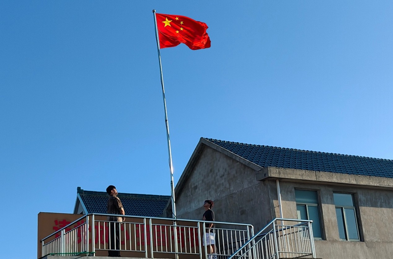 實踐團成員凝視飄揚的五星紅旗 薛琬瑩供圖
