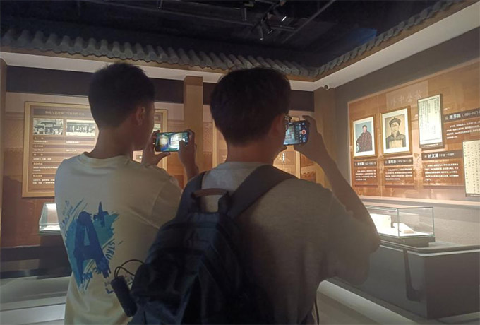 (圖為實(shí)踐隊(duì)在船政文化博物館內(nèi)瞻仰時(shí)間軸 范夢雨/提供)