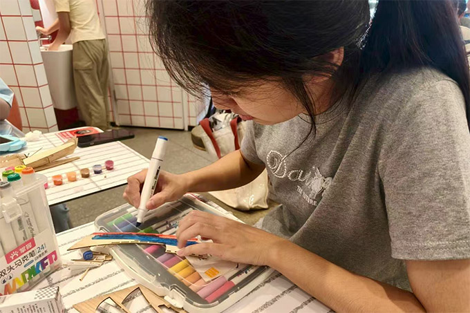 (圖為實(shí)踐隊(duì)在中國船政休息區(qū)制作船政文創(chuàng) 范夢雨/提供)