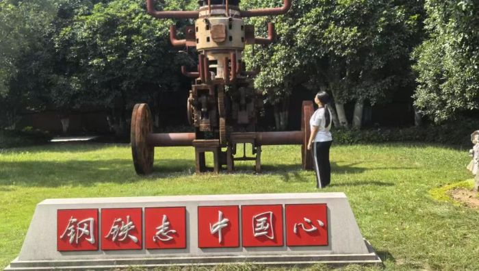 圖為實(shí)踐成員王馨參觀鋼鐵廠。王馨供圖