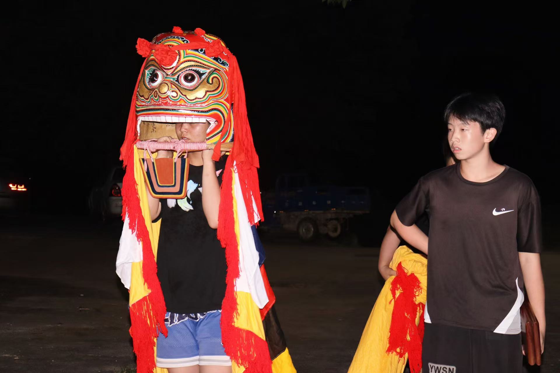 表演結(jié)束后,在街道團(tuán)委副書記鄒鑫牽頭下,團(tuán)隊(duì)與傳承人展開交流。隊(duì)員們得知,貓頭獅第一代傳承人江亞月先生生于1919年,如今高埔崗的傳承人均源自萬綠湖水庫移民,遷移中,貓頭獅文化隨之扎根于此,形成獨(dú)特“移民文化”。曾是當(dāng)?shù)靥厣呢堫^獅表演,受外出務(wù)工潮影響,學(xué)習(xí)者漸少,傳承中斷四十年。去年,老傳承人招募學(xué)徒,著手還原、制作新貓頭獅,然而工藝復(fù)雜,傳承人也難完整復(fù)刻。交流中,隊(duì)員們了解到學(xué)習(xí)流程、學(xué)徒現(xiàn)狀及村民對孩童學(xué)習(xí)的看法,清晰認(rèn)識到傳承困境,傳承使命感油然而生。