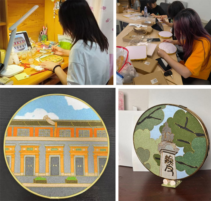 當(dāng)銅絲精準(zhǔn)貼合歷史場景輪廓,彩砂層層暈開先輩熱血色彩,工匠精神與紅色氣節(jié)跨越時(shí)空相擁。制作中,成員們深刻體悟:紅色足跡從不是靜止標(biāo)本,而是代代接續(xù)的情感長卷,青年的誓言正與歷史脈搏同頻共振。此外,我們還錄制掐絲、點(diǎn)藍(lán)工序細(xì)節(jié),將非遺技藝與紅色故事打包成線上“紅色系列”微課堂,讓更多人觸摸非遺溫度、聆聽紅色過往。