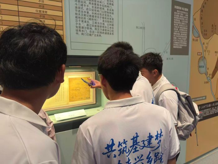 進入揚州市大運河博物館,汴河漕運的繁華在眼前鋪展,身臨其境體驗古人揚帆起航的灑脫,感受古代水利工程的智慧。從隋唐的帆影連天,到明清的商埠林立,再到如今的車水馬龍,在這里的每一件文物與影響,都在訴說著大運河“活著”的故事。從鑒真東渡到鄭和七下西洋,始終都秉持著持之以恒,堅持不懈的可貴精神,這對我們“土木人”而言不僅是精神支柱,更是我們未來勇往直前的動力。
