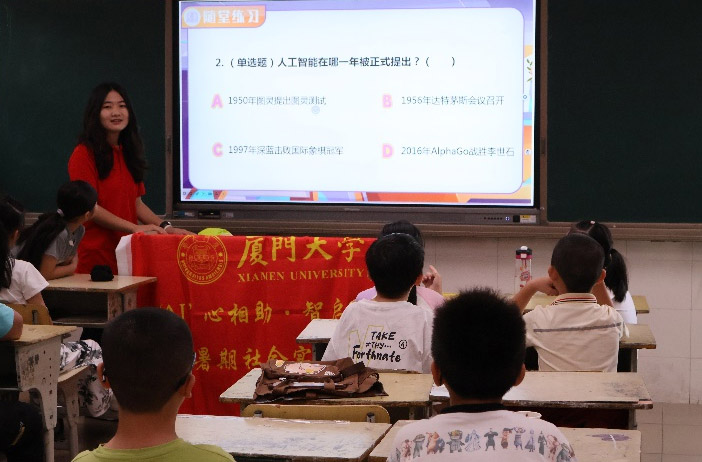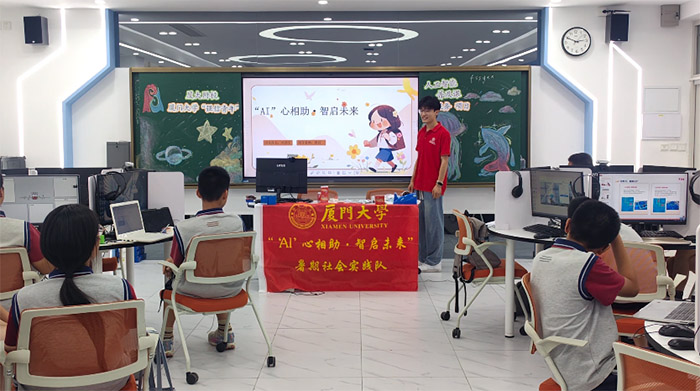 為響應(yīng)國家教育數(shù)字化戰(zhàn)略和《教育強(qiáng)國建設(shè)規(guī)劃綱要(2024-2035年)》中“促進(jìn)人工智能助力教育變革”的號(hào)召,廈門大學(xué)信息學(xué)院“‘AI’心相助·智啟未來”實(shí)踐隊(duì)在2025年7月深入廈門市多個(gè)社區(qū)與學(xué)校,通過實(shí)地調(diào)研、AI科普與編程教學(xué),將前沿科技的種子播撒到青少年心中,用專業(yè)知識(shí)助力構(gòu)建公平、可持續(xù)的基礎(chǔ)教育生態(tài)。
