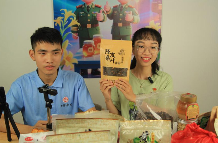“家人們看過(guò)來(lái)!這是我們下渠鎮(zhèn)新鮮采摘的生態(tài)香菇,肉質(zhì)厚實(shí),煲湯絕配……”在下渠鎮(zhèn)電商直播間,實(shí)踐隊(duì)員白采右和林怡欣略顯緊張卻充滿熱情地面對(duì)鏡頭。依托下渠鎮(zhèn)余書記的抖音賬號(hào)(古圩寧路兵支書:gxnl1984),隊(duì)員們以兩人一組,勇敢站到鏡頭前,化身為推介下渠特色農(nóng)產(chǎn)品的“帶貨主播”。從初試鏡頭的拘謹(jǐn),到漸入佳境的流暢表達(dá),隊(duì)員們深度體驗(yàn)著電商助農(nóng)的鮮活脈動(dòng)。