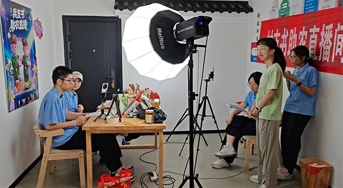 【圖片:實(shí)踐隊(duì)成員體驗(yàn)電商直播帶貨】