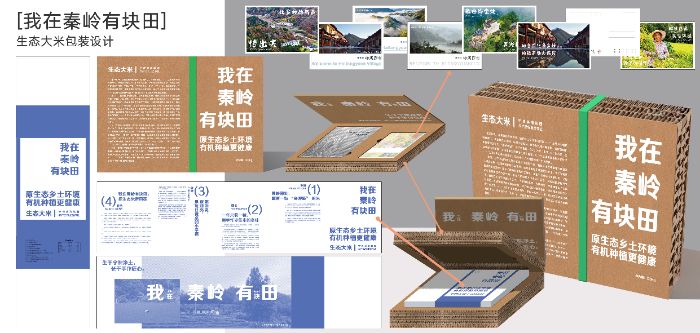 圖3 7月7日調(diào)研合照 圖4 “我在秦嶺有塊田大米”包裝設(shè)計