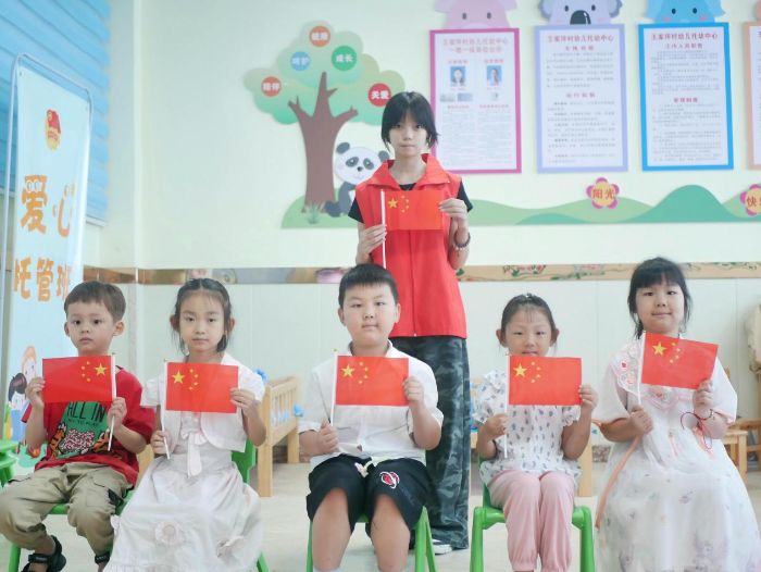 課程尾聲,支教老師拿出鮮艷的五星紅旗,向孩子們細(xì)致講解國旗的含義:“紅色代表革命先烈的熱血,五顆星星象征著全國人民團結(jié)在黨的周圍。”孩子們圍坐一圈,目不轉(zhuǎn)睛地聽著,不時伸出小手輕輕觸摸國旗上的五星。隨后,老師為每個孩子分發(fā)了一面小國旗,孩子們高舉國旗,眼中閃爍著自豪的光芒,在陽光下形成一片紅色的海洋,愛國之情在無聲中浸潤童心。