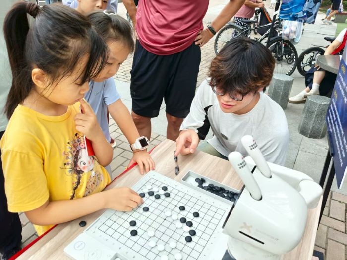 “黑白棋子間,也能讀懂AI的智慧。”在AI下棋機器人對弈區,孩子們輪流坐在機器人對面展開五子棋較量。孩子在“贏棋的喜悅”與“輸棋的思考”中,自主感受AI“如何判斷落子位置”“怎樣預判棋局走向”。這種“看得見、摸得著”的AI體驗,遠比書本上的描述更讓他印象深刻。