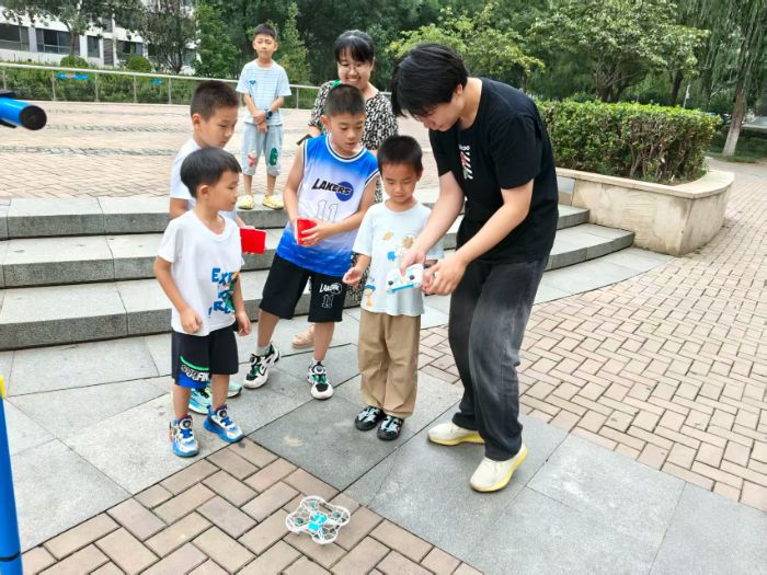 為了讓科普內容更貼合兒童認知,實踐團在活動前1周就開始精心籌備:成員們分工查閱兒童AI科普資料,將復雜的“算法”“編程”概念轉化為“機器人的‘思考方式’”“玩具的‘指揮密碼’”;反復測試自主研發的模塊化小玩具,確保安全性與趣味性兼具;提前聯系社區確認活動場地,劃分互動區域、調試設備,只為給孩子打造更舒適的體驗環境。“看到孩子們主動提問、認真嘗試的樣子,就知道所有準備都值得。”團隊成員、說,有家長反饋孩子回家后還在念叨“機器狗”“無人機”,甚至主動翻找科技類繪本,這種“從好奇到探索”的轉變,正是科普活動最想實現的效果。